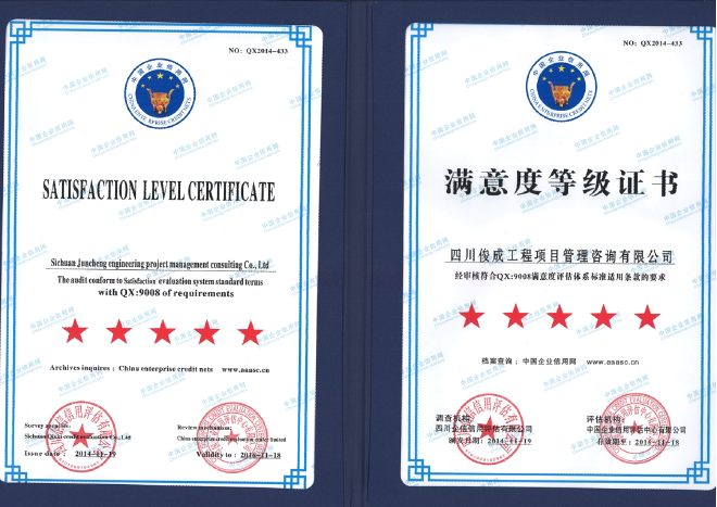 俊成建昱工程集團有限公司始建于二零零九年二月,中凱俊成建設(shè)咨詢有限公司為旗下子公司,公司分別位于四川省成都市成華區(qū)、德陽市凱州新城,公司注冊資本5000萬元人民幣。中凱俊成通過了ISO9001質(zhì)量管理體系、ISO14001環(huán)境管理體系、ISO45001職業(yè)健康安全管理體系認證。 公司目前具有工程監(jiān)理綜合資質(zhì),工程造價咨詢甲級資質(zhì),工程招標代理甲級資質(zhì),冶金行業(yè)(冶金礦山工程) 甲級設(shè)計.....[詳情]